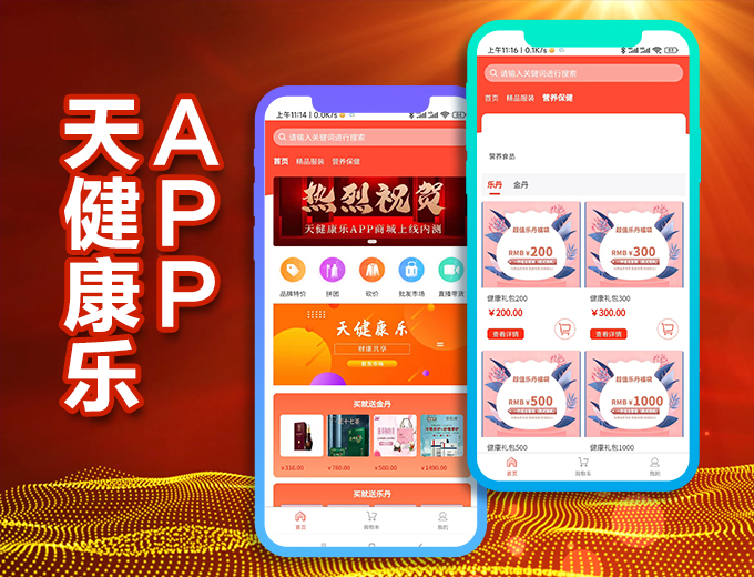 今天就为大家介绍一下我们成功上架的,有直播带货功能的多用户三级分销商城--天健康乐APP。