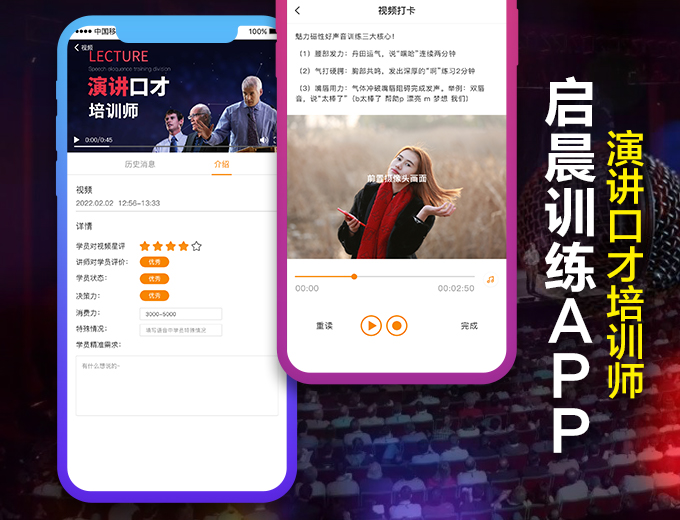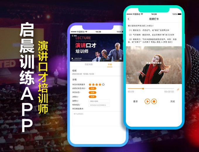 出口成章、妙语连珠是很多人都希求的,演讲口才培训是有一定市场的,想进入赛道的老板可以考虑一下,今天就为大家推荐一款线下课程预约、音频视频讲师辅导、朗读视频打卡、每日朗读训练的演讲培训用的app。