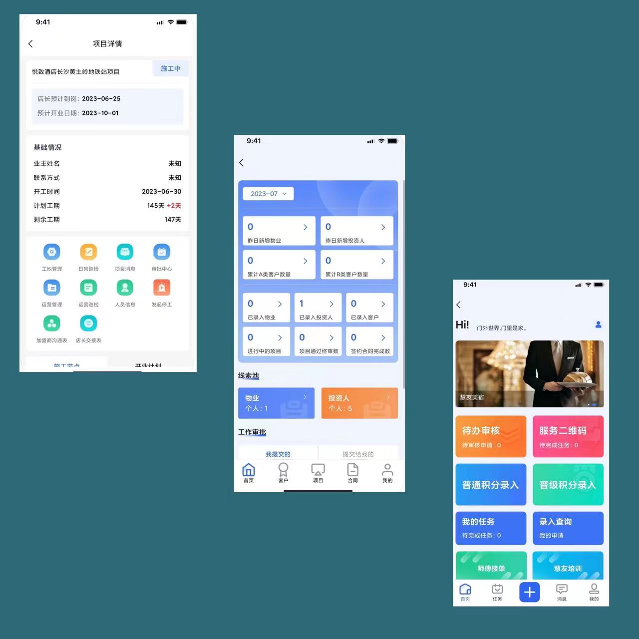 慧友人是湖南慧友酒店集团有限公司推出的一款集服务落地系统(集团员工积分管理),CRM系统(开发部线索及项目管理),日志系统(集团员工每天发布日志管理),供应链商城系统(供应商物资采购管理),营建系统(集团项目筹建-施工计划-运营开业审批节点管理)