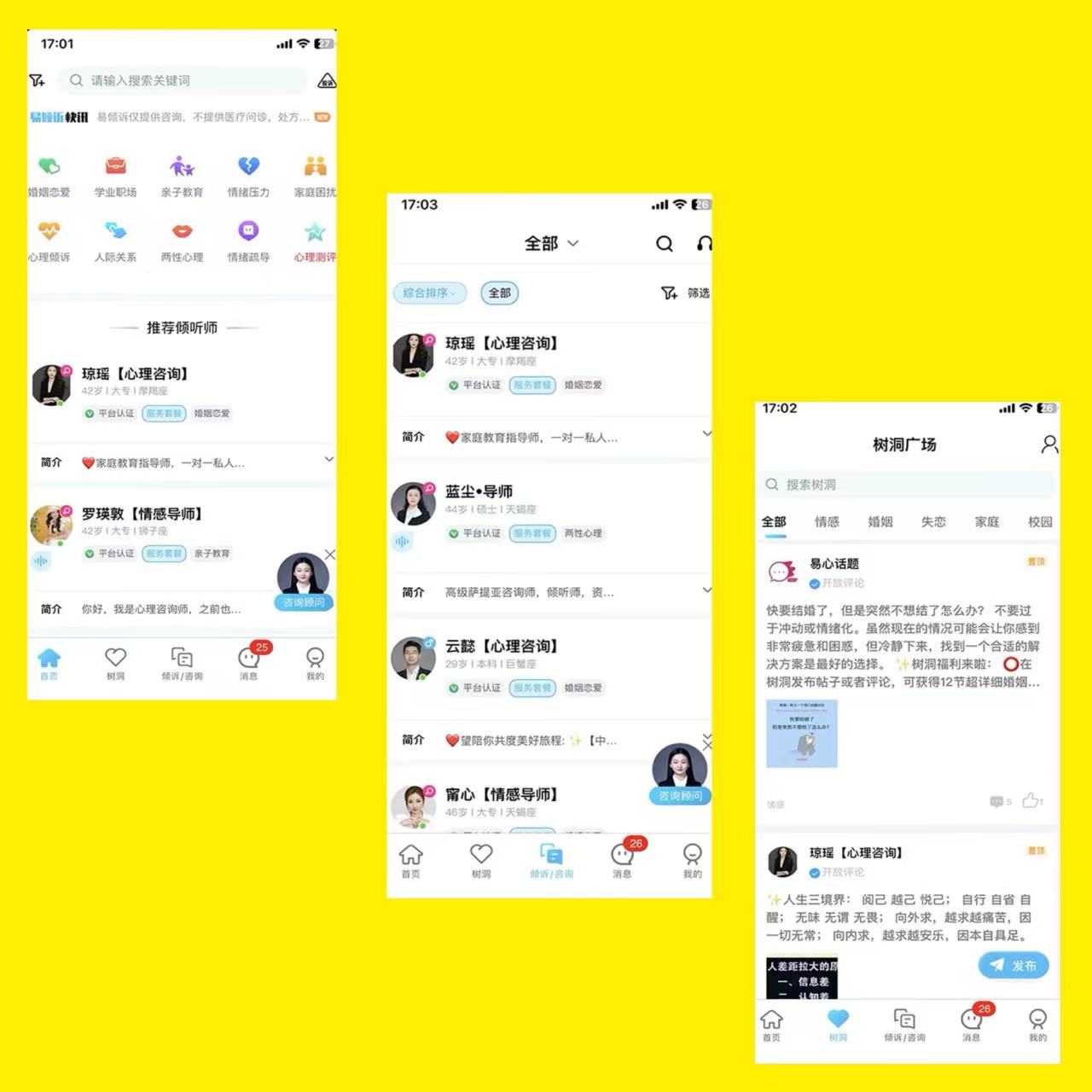 应用简介:易倾诉,是一款涵盖心理咨询、情感倾诉的线上即时倾诉咨询平台。